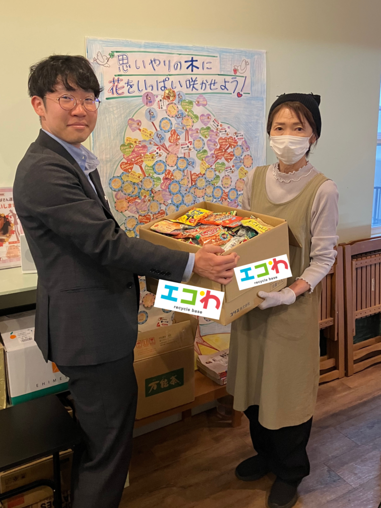 ポイントを使えます!エコわリサイクルベースで回収した資源物の重量に応じて、協賛先として登録された地域の小中学校にエコわポイントが協賛されます。
