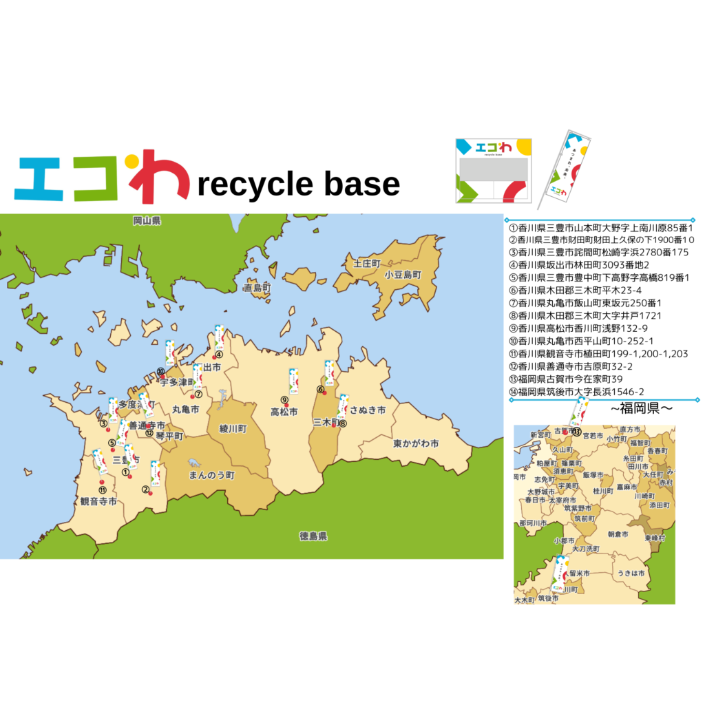 現在、エコわは 香川・福岡に14か所 展開しており、今後も拡大を予定しています。ぜひお近くのエコわをご利用ください。