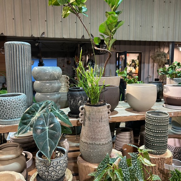 ちょっと変わった見た目の植物や、たくさんの植木鉢。