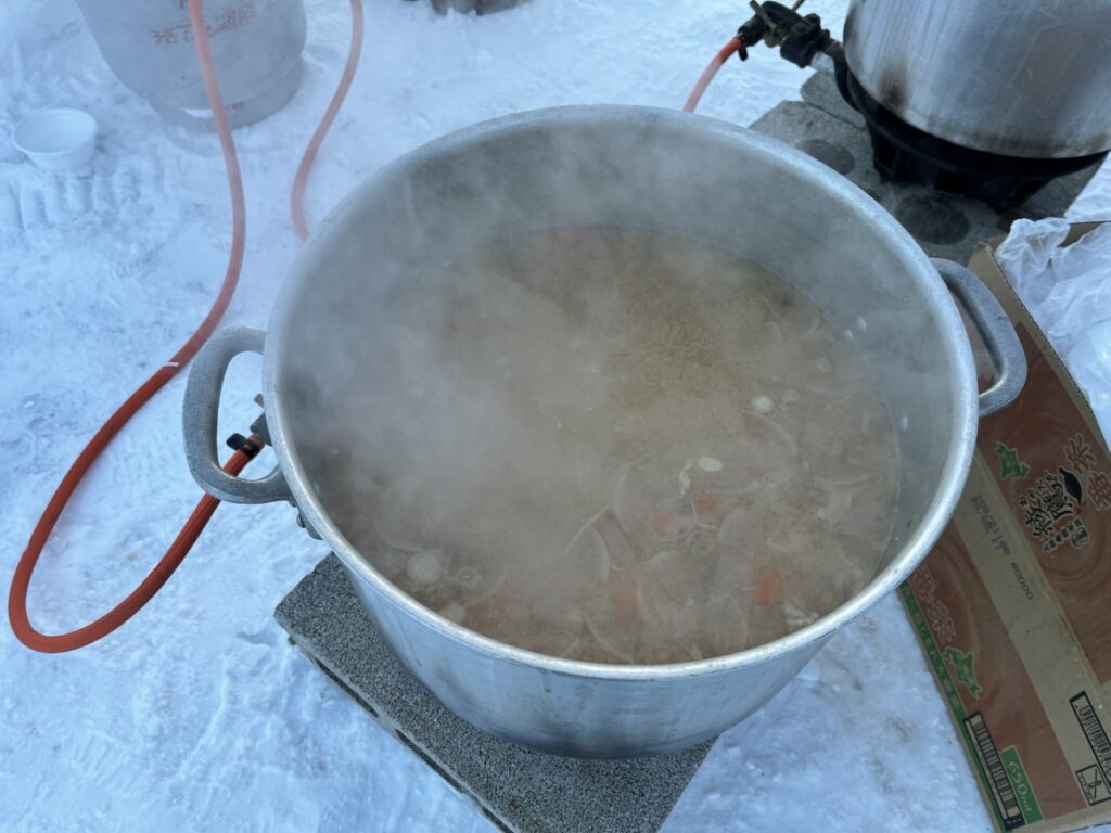 日没あたりから一段と気温が下がったせいもあり、豚汁コーナーには長い行列ができ用意した200杯の豚汁はなんと30分で完売となりました。